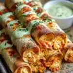Delicious baked taquitos filled with creamy chicken and spices, perfect for family gatherings or cozy nights.