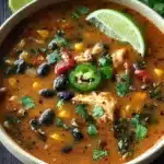 A savory and creamy Chicken Poblano and Black Bean Soup, perfect for cozy dinners and gluten-free meals.
