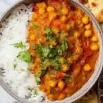 A creamy and spiced vegetarian dish featuring chickpeas simmered in a luscious coconut milk and tomato sauce.