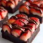 Delightful gluten-free brownies infused with fresh strawberries and topped with rich melted chocolate.