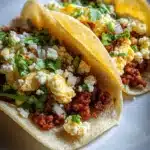 This recipe reflects the heart and soul of cooking—simple ingredients brought together to create something wondrous and fulfilling. I hope you’ll bring this Chorizo Egg Tacos Fiesta: 5-Minute Flavor Explosion into your home and share it with loved ones. I’d love to hear your thoughts or any special twists you might add, so please comment below or share this joy with your friends!