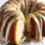 - Drizzle the glaze over the cooled cake and sprinkle with additional cinnamon-sugar mixture.
