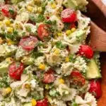 A refreshing and vibrant pasta salad featuring chewy pasta, juicy cherry tomatoes, and crunchy corn, all tossed in a zesty lime dressing.