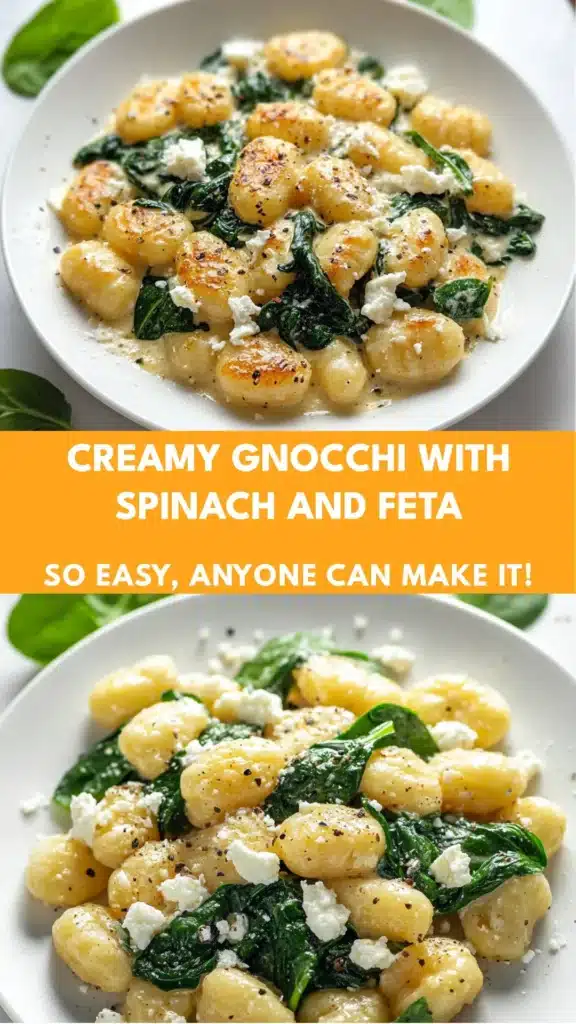 In conclusion, Creamy Gnocchi with Spinach and Feta is a delightful dish that brings comfort and flavor to your table. Its simplicity and versatility make it a perfect choice for any occasion, whether it’s a busy weeknight or a special family gathering. I hope you enjoy making this recipe as much as I do! If you try it, please share your thoughts in the comments below or share this recipe with fellow food lovers. Happy cooking!