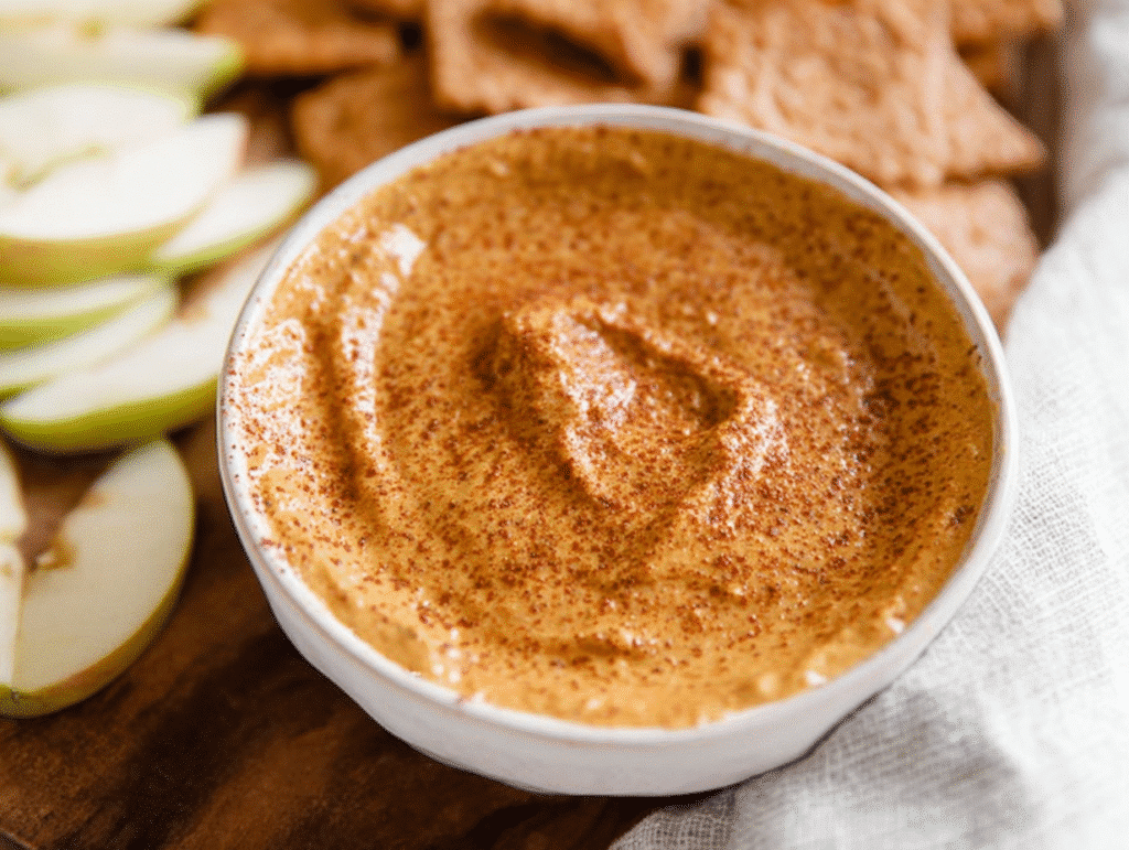 A creamy, dairy-free dip that combines the classic flavors of pumpkin pie with healthy, plant-based ingredients.