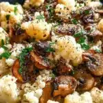 A hearty and comforting gluten-free dish featuring sautéed garlic, tender cauliflower, and earthy mushrooms.