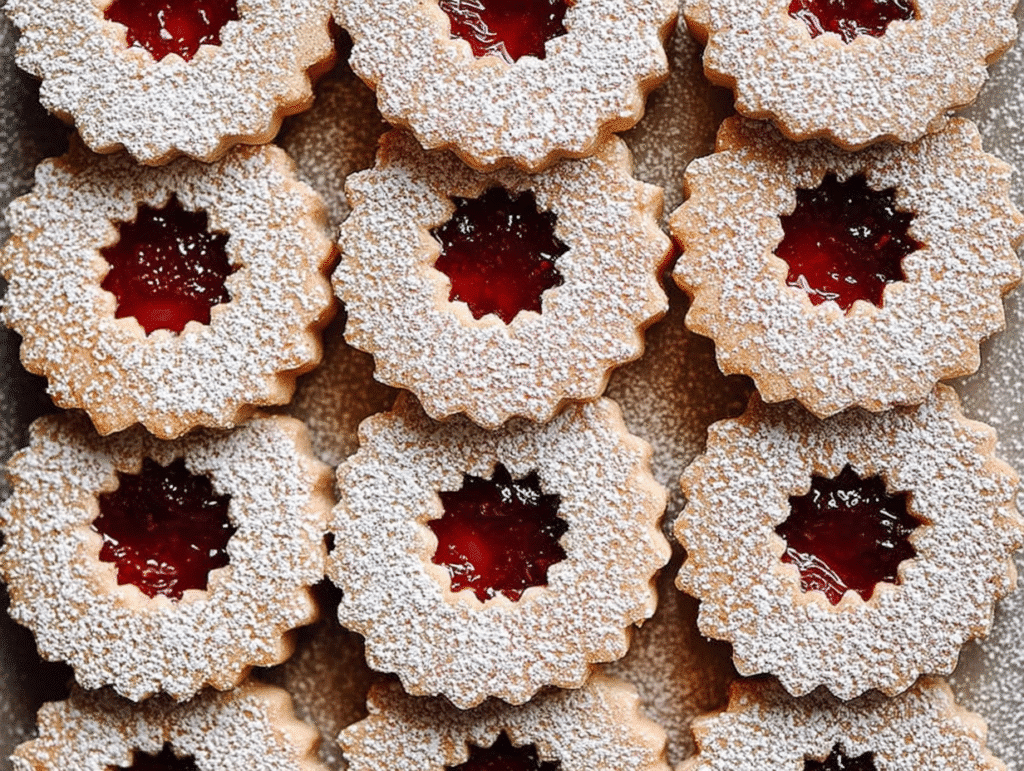 Imagine biting into a crisp, golden cookie that crumbles just right, revealing a vibrant layer of raspberry jam nestled between two delicate halves. The first taste is a delightful dance of sweetness and tartness, with the nutty undertones of almond flour adding depth. Each cookie is a testament to the joy of baking, and I love how they bring people together, whether at a festive gathering or a cozy family dinner.