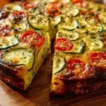 A delightful quiche filled with zucchini, tomatoes, and creamy cheeses, perfect for family gatherings or a cozy brunch.