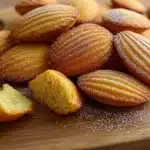 Delicate French madeleine cookies with a soft, airy texture evoke nostalgia and comfort.
