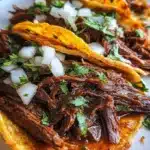Indulge in these Authentic Mexican Birria Tacos, featuring tender, slow-cooked beef and vibrant toppings wrapped in crispy corn tortillas.