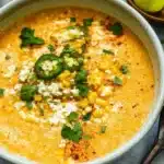 A hearty and comforting soup inspired by the vibrant flavors of traditional Mexican street corn.