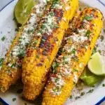 Delight in the vibrant flavors of Mexican Street Corn, or Elote, featuring charred corn topped with creamy mayonnaise, cheese, and spices.