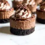 Indulge in the rich flavors of Mini Triple Chocolate Cheesecakes, featuring dark, milk, and white chocolate for a delightful dessert experience.