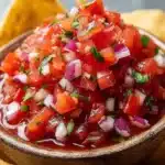 A vibrant and refreshing salsa made with fresh tomatoes, herbs, and jalapeños, perfect for any gathering.