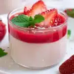 A luscious Italian dessert featuring creamy panna cotta paired with vibrant strawberry sauce, perfect for any occasion.